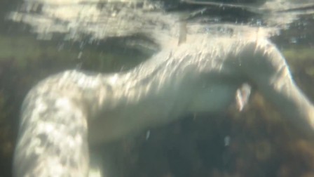 Голая девушка плавает в море и ласкает себя под водой