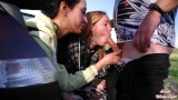 Threesome outdoor blowjob - Two Hot Porn Models sucked me off in the trunk of a car - 4k