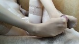 jerking off my stepbrother's cock. I masturbate my legs in stockings with a