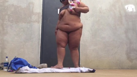 Bbw having fun at outdoor racquetball court while people play close by