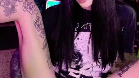 Goth girl shows off Hotwheels collection and stretches her tight pussy