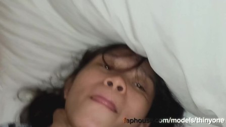 Little Thinyone watching porn and gives work for fingers and mouth