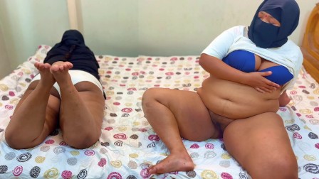 Arabian Big Ass Hot Stepdaughter & Mom Bed Share in Hotel - Fingering Hairy Pussy