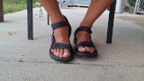 My male pedicured feet in sandals