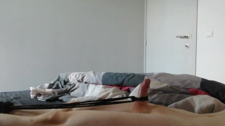 Intense shaking handsfree orgasm with my dick tied up