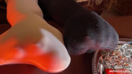 My tasty nylon foot waits for your warm elastic tongue, lick it gentle..