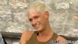 Tattooed twink Theo stroking hard big dick solo masturbation